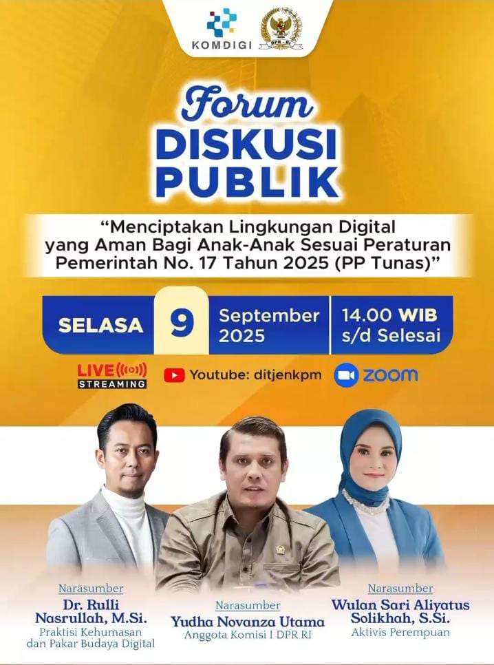 KOPRI.ID - Komunikasi Digital Indonesia (Komdigi) bersama DPR RI menggelar forum diskusi publik bertajuk “Menciptakan Lingkungan Digital yang Aman Bagi...